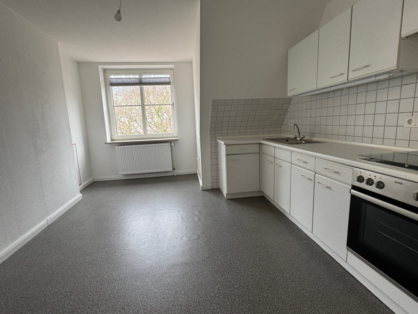 Beim Betreten der Wohnung gelangen Sie über einen langen Flur in die einzelnen Räume. Zur linken Hand befindet sich die Küche, während Sie geradeaus in das großzügige und helle Wohnzimmer gelangen. Von hier aus erreichen Sie ein kleines, gemütliches Durchgangszimmer, das sich ideal als Lese- oder Arbeitszimmer eignet.