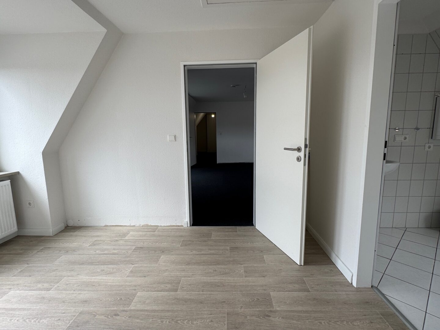 Vom Durchgangszimmer aus gelangen Sie rechts in das Duschbad mit Fenster sowie geradeaus in das Schlafzimmer. Sowohl vom Durchgangszimmer als auch vom Schlafzimmer aus haben Sie Zugang zu einem kleinen Balkon, der zum Verweilen einlädt.