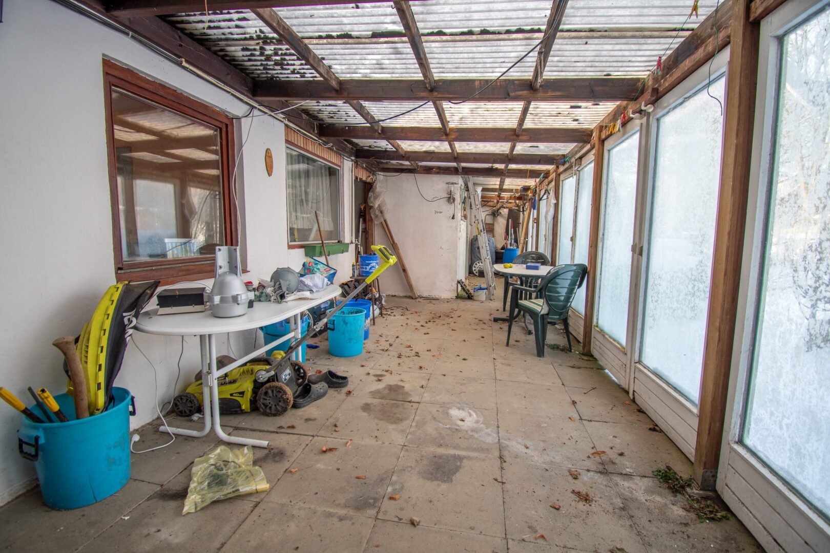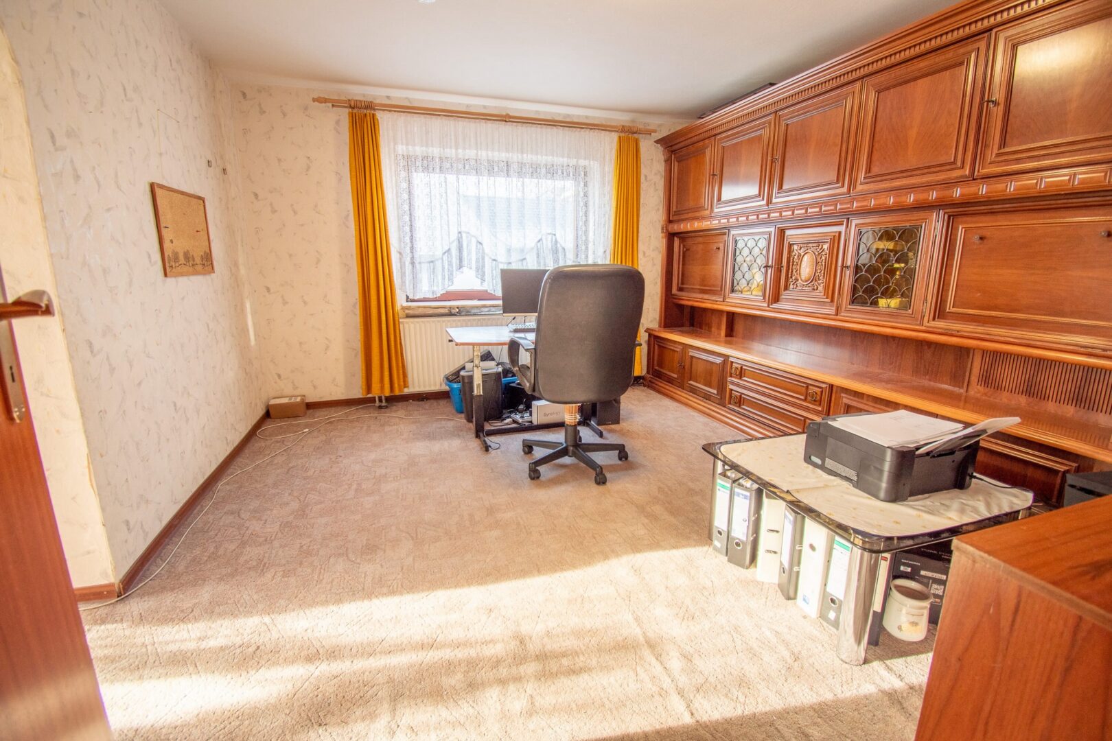 Auf der rechten Seite des Hauses befinden sich die Küche sowie zwei weitere Zimmer, von denen eines als Durchgangszimmer genutzt wird. Diese Räume eignen sich hervorragend als Arbeits-, Kinder- oder Hobbyzimmer und bieten flexible Nutzungsmöglichkeiten.